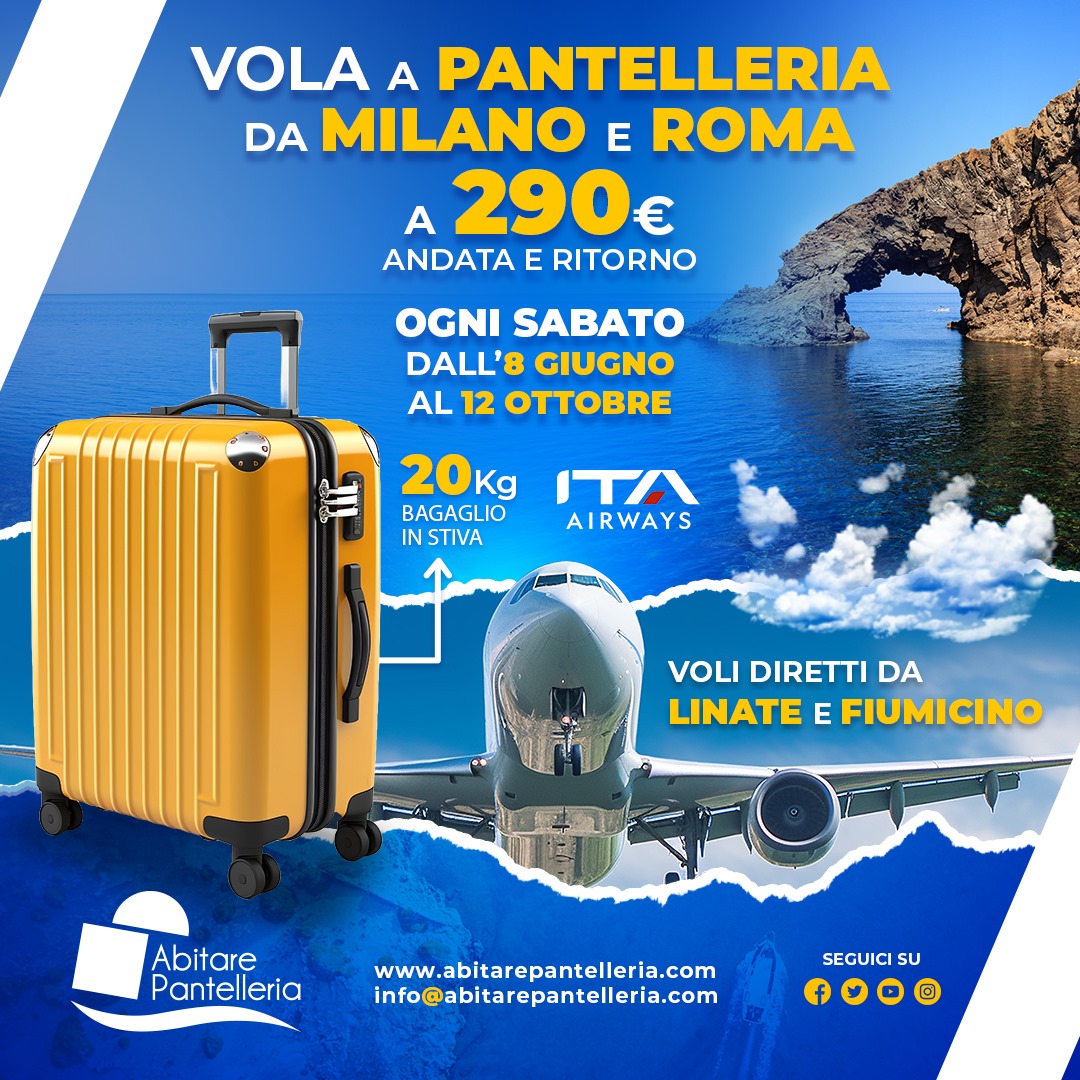 A partire dal 08 giugno fino al 12 di ottobre 2024, la splendida isola di Pantelleria sarà collegata con voli diretti ogni sabato con gli aeroporti di Milano Linate e Roma Fiumicino.