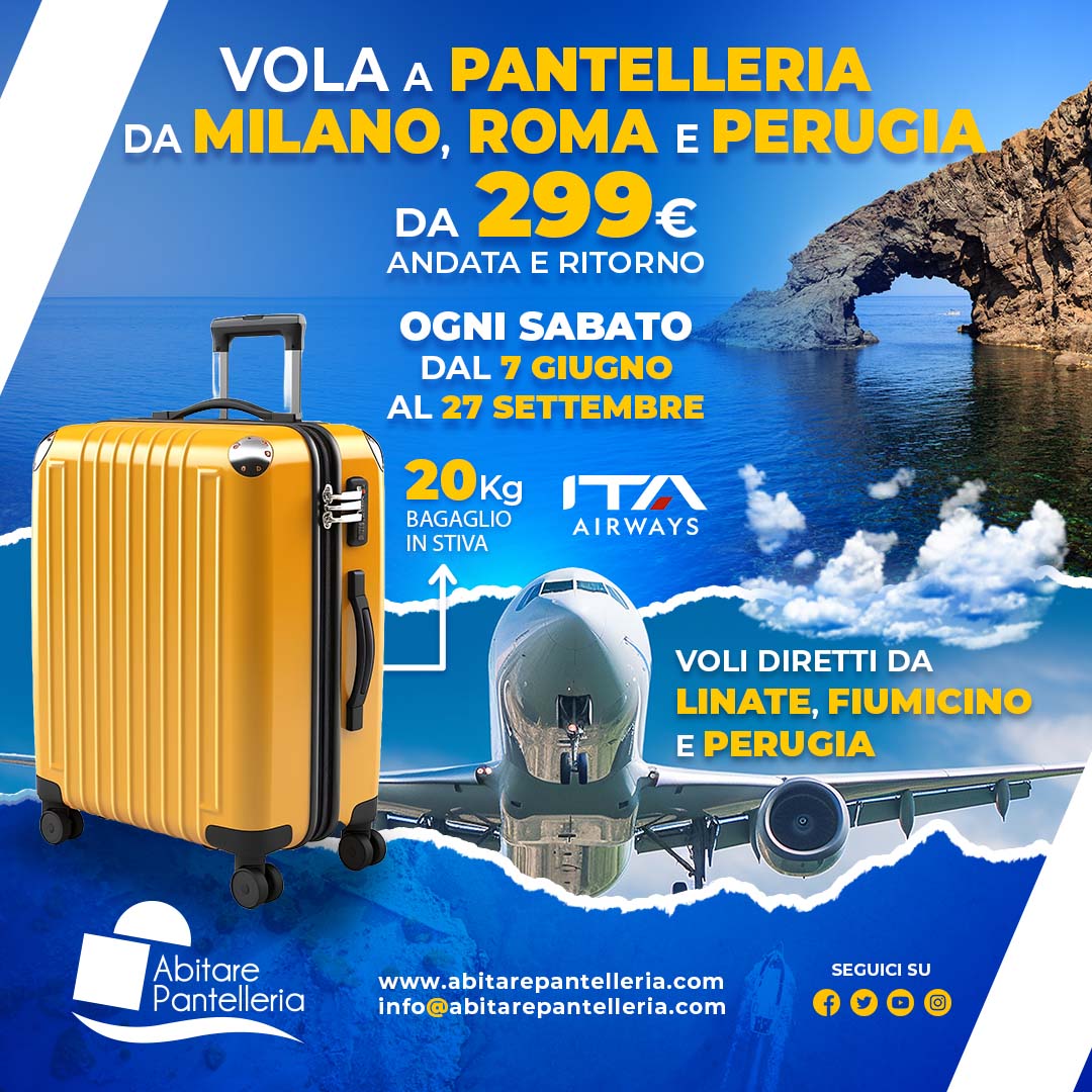 A partire dal 07 giugno fino al 27 settembre 2025, la splendida isola di Pantelleria sarà collegata con voli diretti ogni sabato con gli aeroporti di Milano Linate, Roma Fiumicino e Perugia.