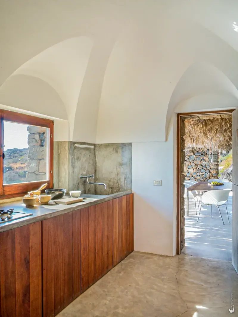 Overlooking one of the most evocative corners of Pantelleria, Baia di Nikà is a rare property, capable of stirring emotion from the very first glance. An authentic dammuso where elegance is born of simplicity, and every detail has been chosen with restraint, taste and deep respect for the surrounding natural landscape.