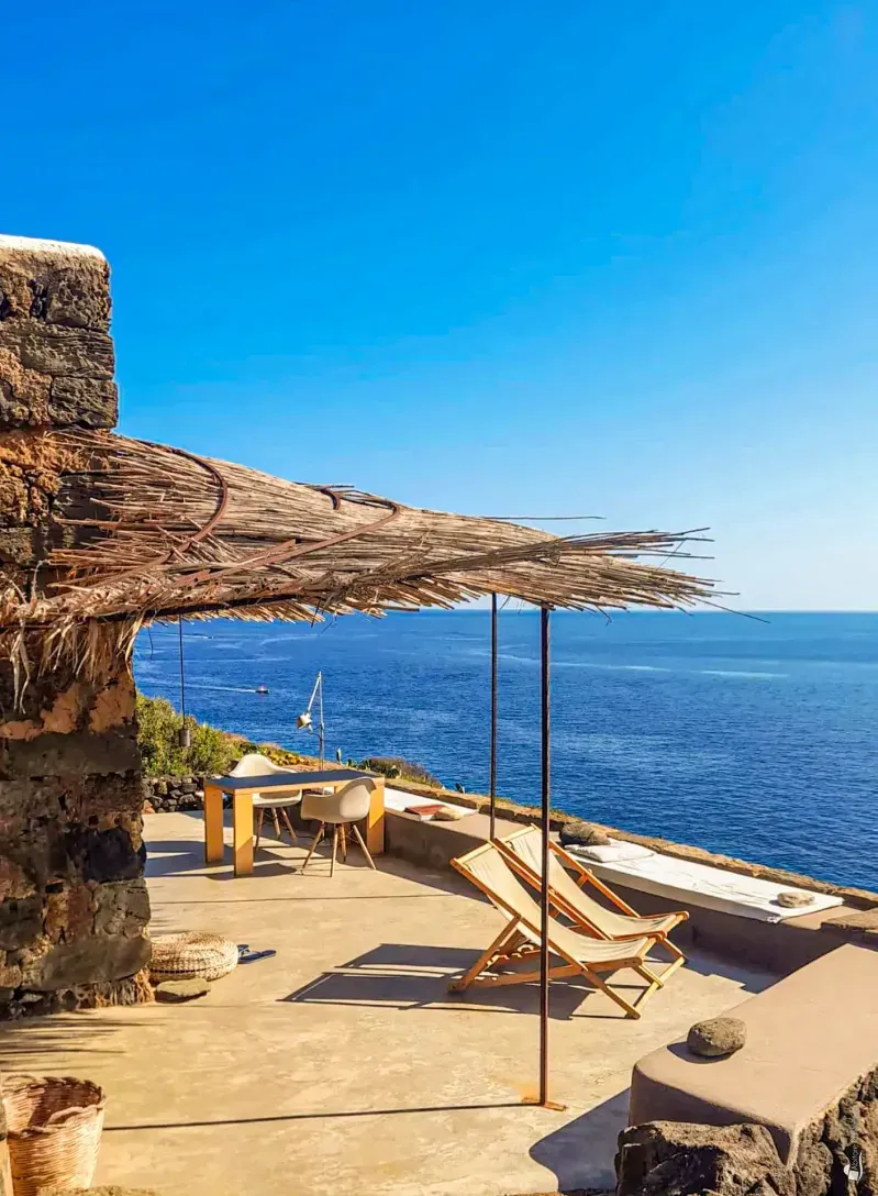 Dammuso Baia di Nikà Suite is a cosy and intimate retreat set directly on the sea in Nikà, one of Pantelleria’s most evocative and enchanting coves. Black lava rock and lush Mediterranean scrub embrace this precious spot, enhancing its charm and authenticity.