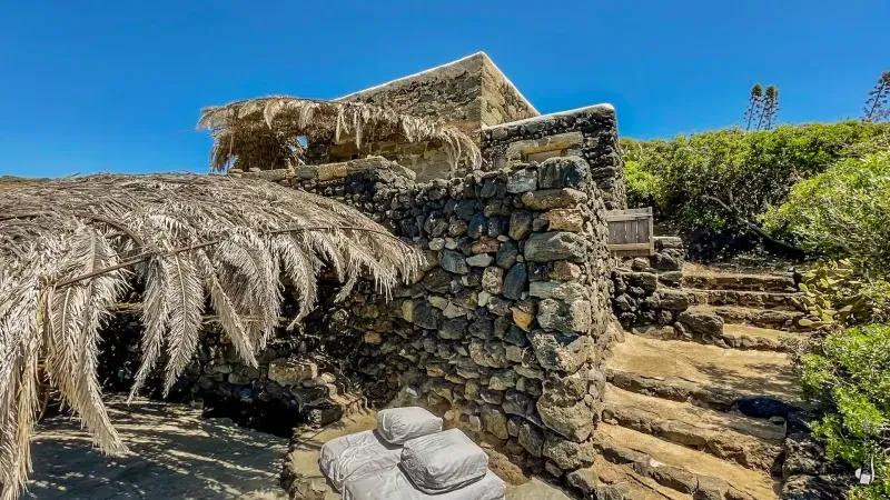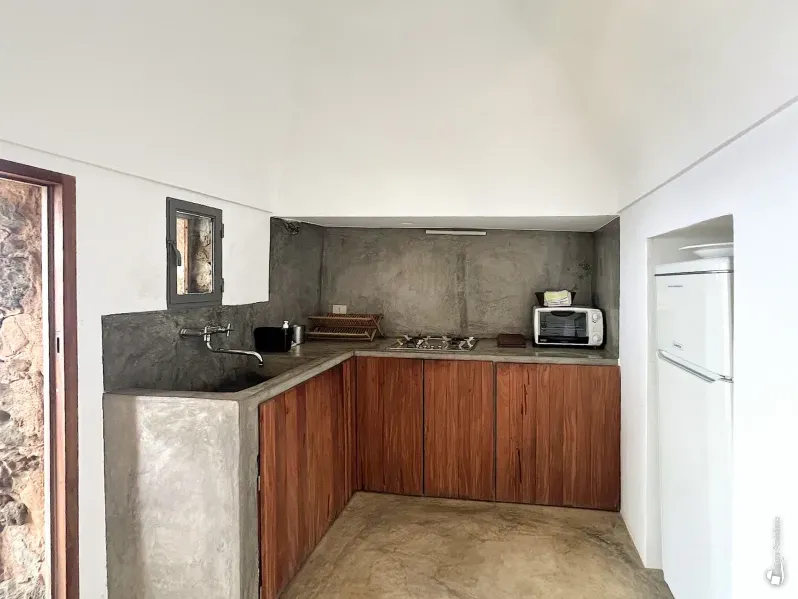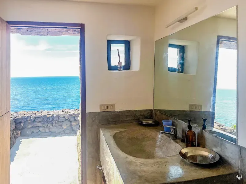 This area also includes a barbecue with sink and an outdoor shower. Just a short distance away are natural thermal waters—an unmissable highlight for anyone staying in this part of the island.