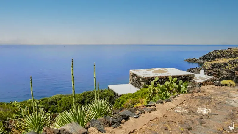 Access to the dammuso is from the perimeter road via a former mule track—unpaved but drivable—quite steep and uneven, leading to the private parking area beside the house. Hiring a small four-wheel-drive vehicle is recommended. Alternatively, a standard car may be left at the parking area before the descent; please note that on departure luggage will need to be carried back up on foot.